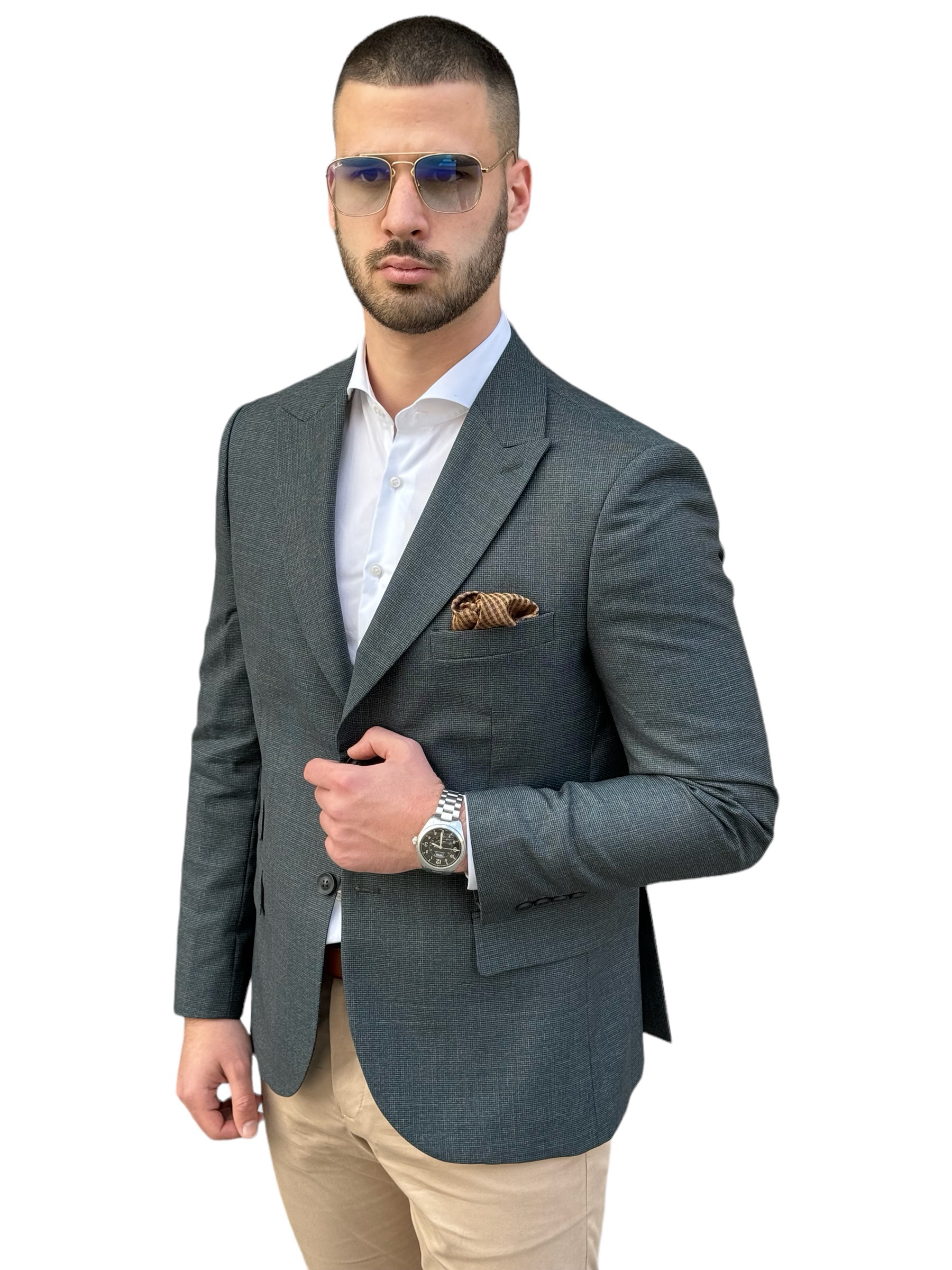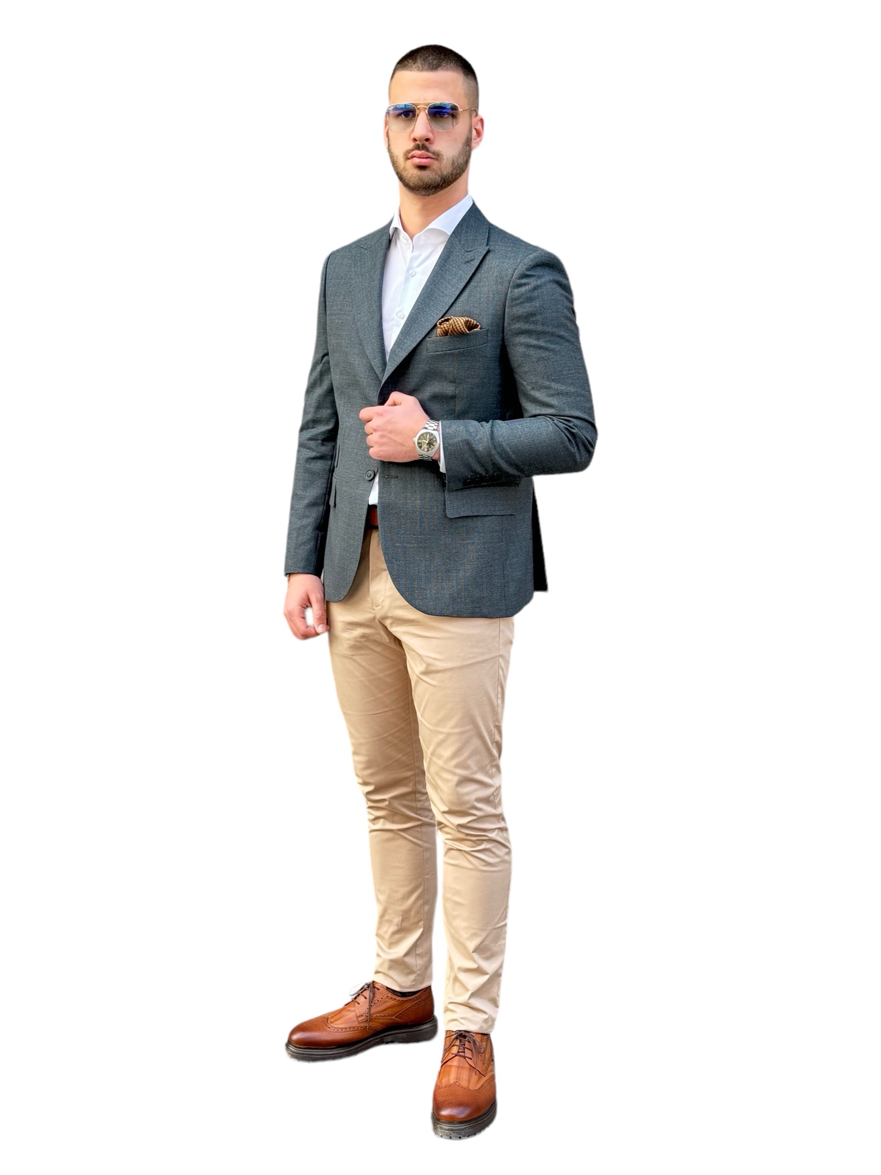 Podignite svoj stil uz naš Moss Green Sako, dizajniran za modernog džentlmena. Ovaj besprekorno skrojen blejzer ima elegantnu siluetu koja odiše samopouzdanjem i sofisticiranošću. Bogata zelena boja dodaje dašak jedinstvenosti, čineći ga izuzetnim komadom u vašoj garderobi. Bilo da prisustvujete svečanom događaju ili jednostavno želite da date izjavu, naš šumski zeleni blejzer je savršen izbor za pronicljive muškarce.